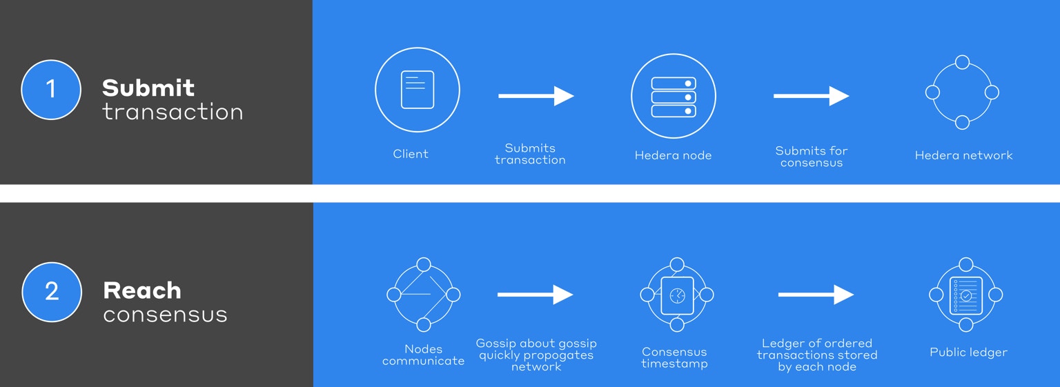 Transactions are requests sent by a client to a node with the expectation that they are submitted to the network for processing into consensus order and subsequent application to state. Each transaction (e.g.TokenCreateTransaction()) has an associated transaction fee compensating the Hedera network for processing and subsequent maintenance in a consensus state.