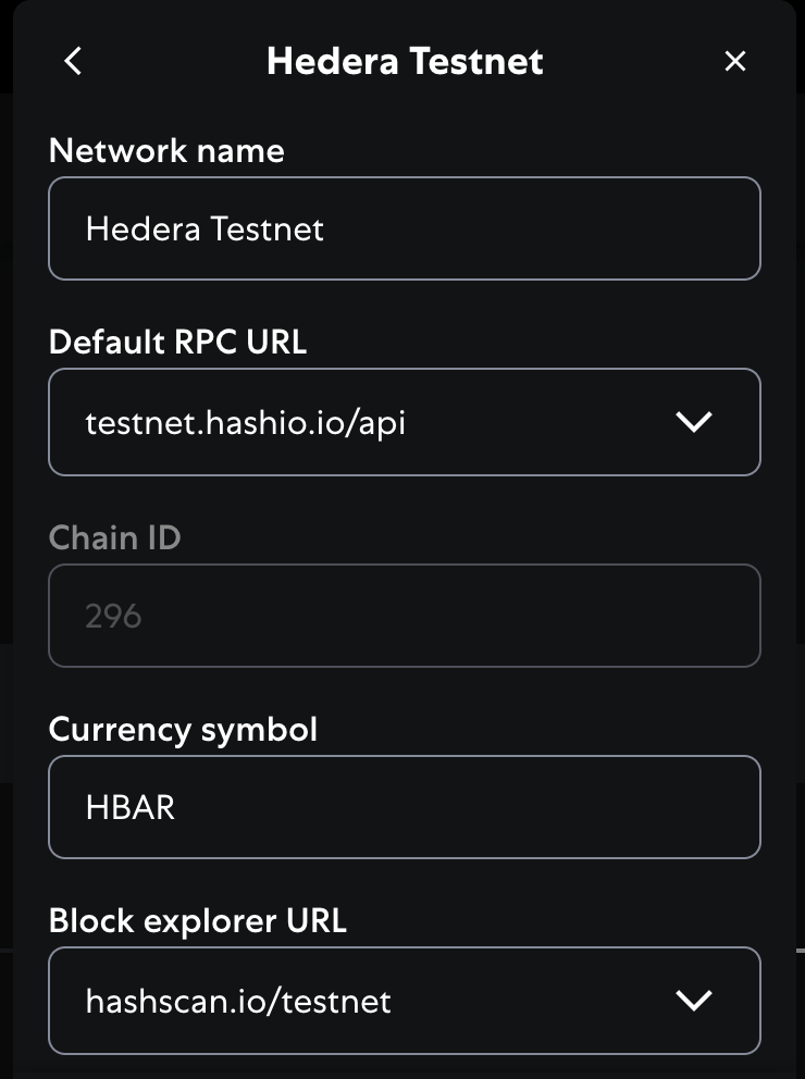 • Network Name: Hedera Testnet