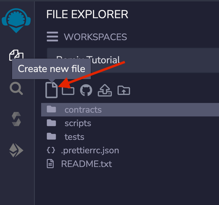 Open your web browser and navigate to Remix IDE. Click on the file icon in the File Explorer tab to create a new file and name it HelloHedera.sol .