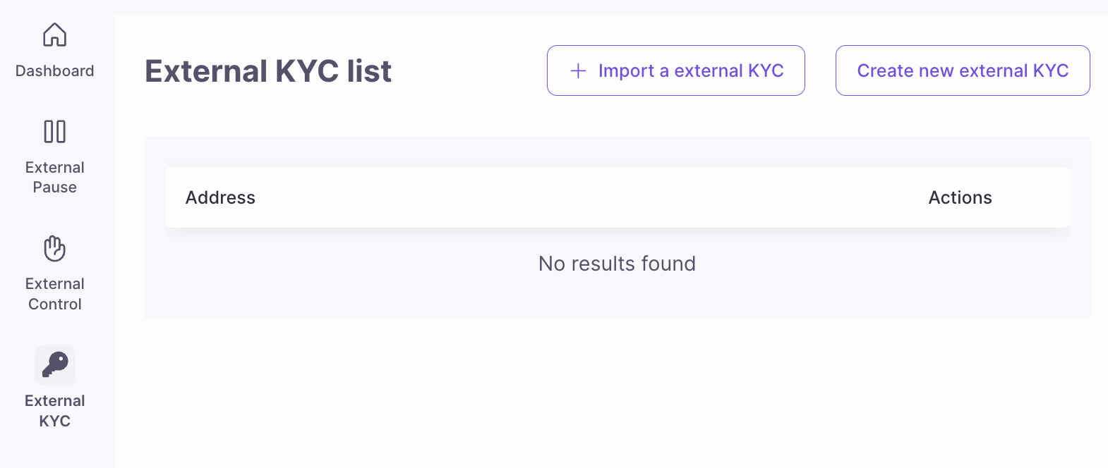 You have two ways to manage KYC. Choose based on your needs.External KYC List