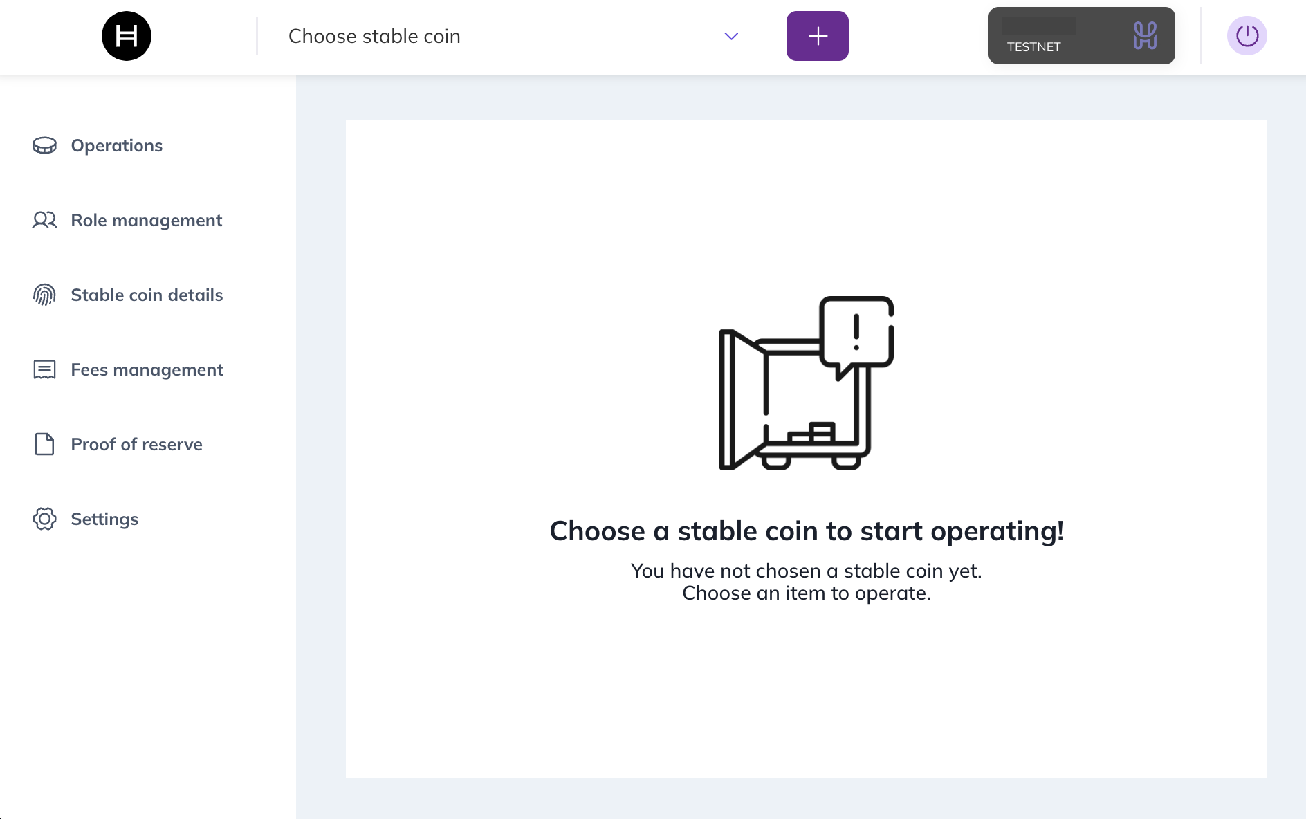 To operate your stablecoin, connect your wallet to the platform. After successful authentication, select the stablecoin you wish to interact with from the drop-down list of available coins. Once the stablecoin information is loaded, navigate to the “Operations” tab. You’ll see a variety of actions and your accessible operations will be tied to the roles assigned to your account for the chosen stablecoin. Here’s a quick rundown of what each operation allows: