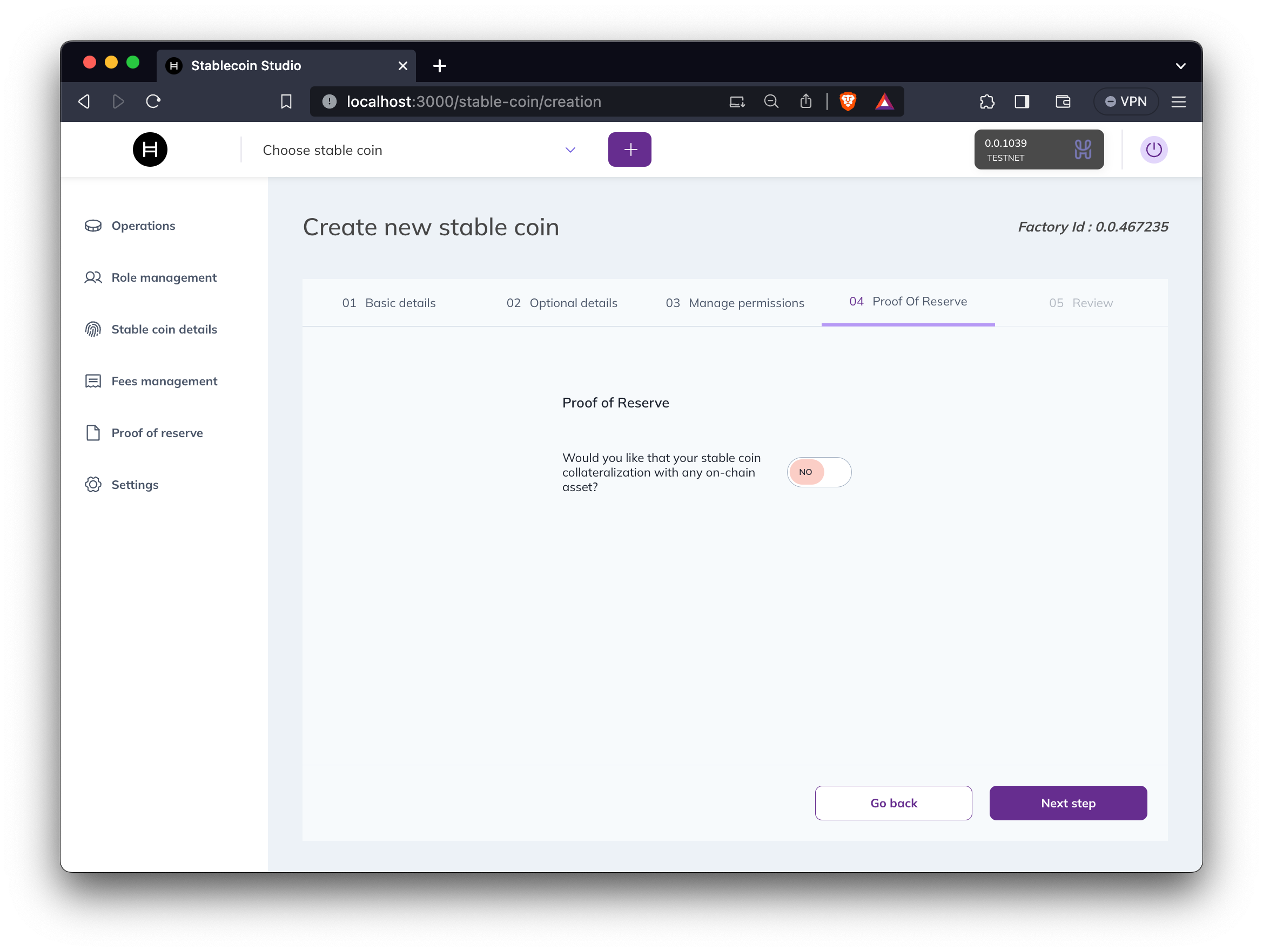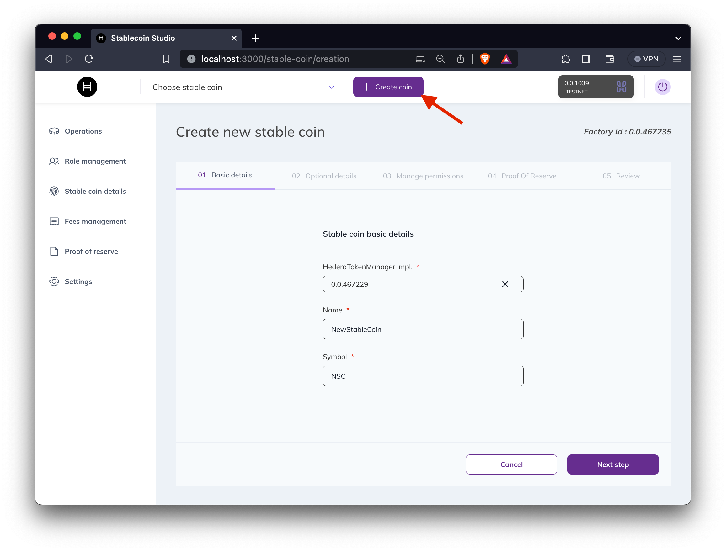 Now that your project is set up and the web application is running let’s create our first stablecoin!
