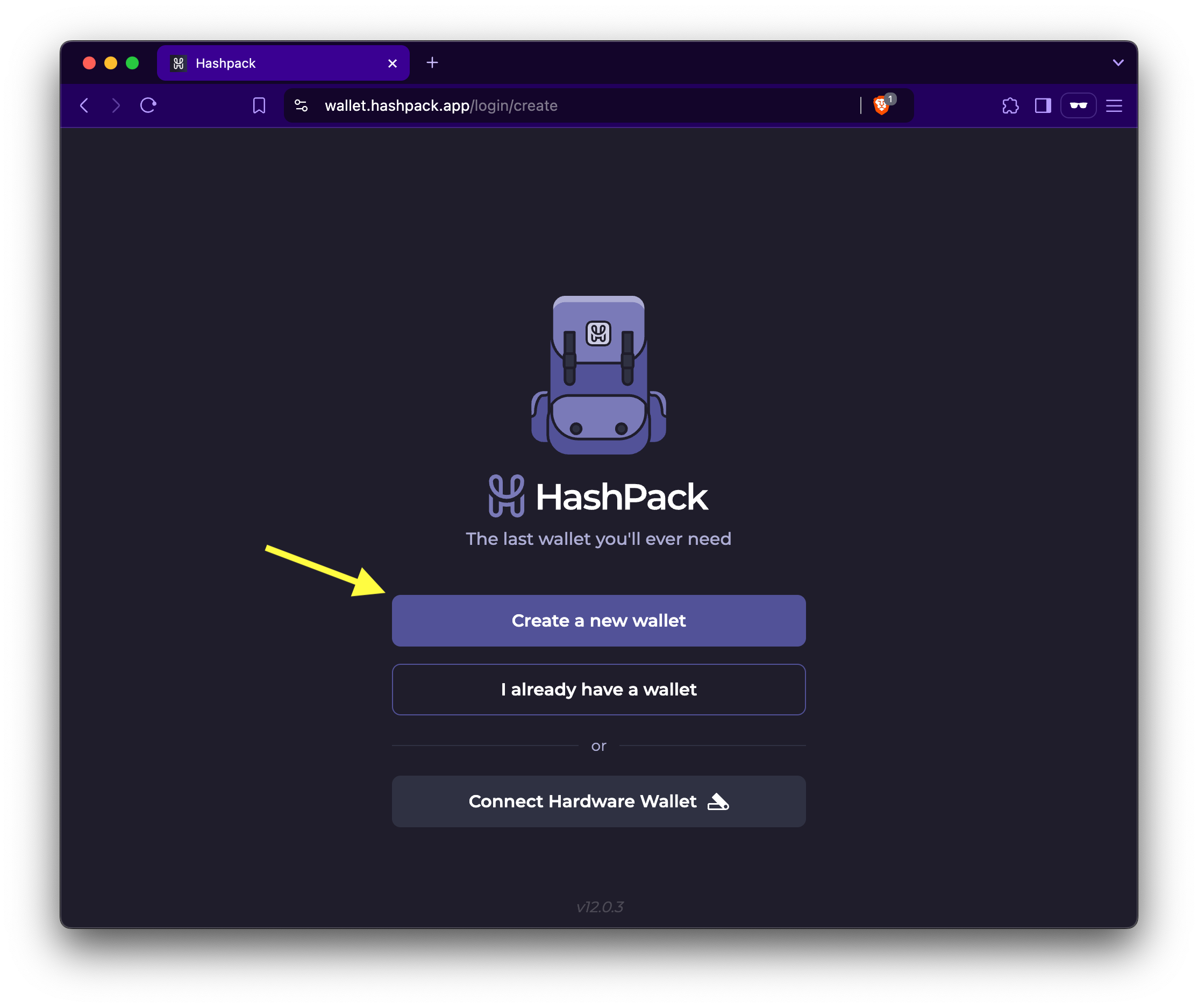 The HashPack Wallet makes it easy to create and manage Hedera Testnet accounts through its web app, browser extension, or mobile app. Follow the steps below to create an ECDSA testnet account (ED25519 is also supported). This guide uses the HashPack web app for demonstration.