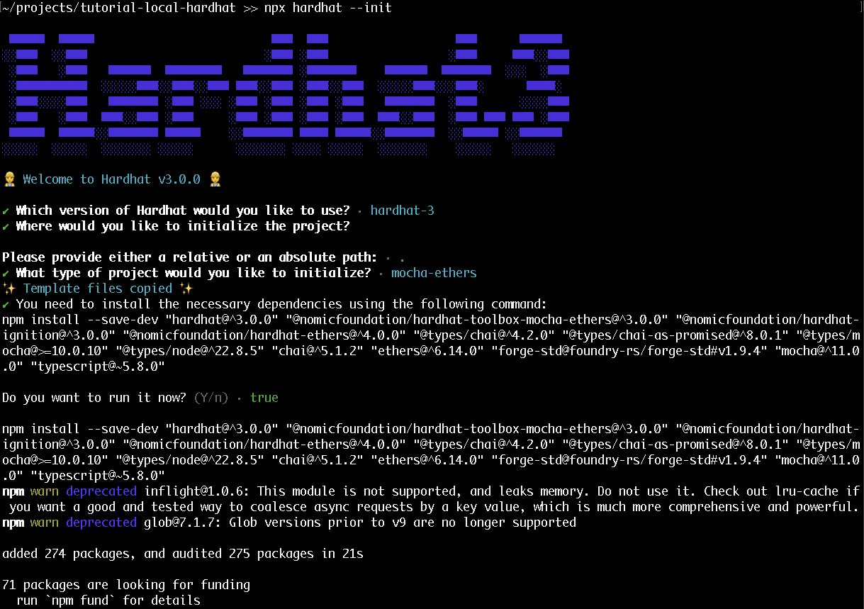npx hardhat --init